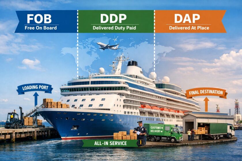 貿易においてよく使われる「FOB・DAP・DDP」は、商品の受け渡しや費用負担の範囲を決める取引条件です。